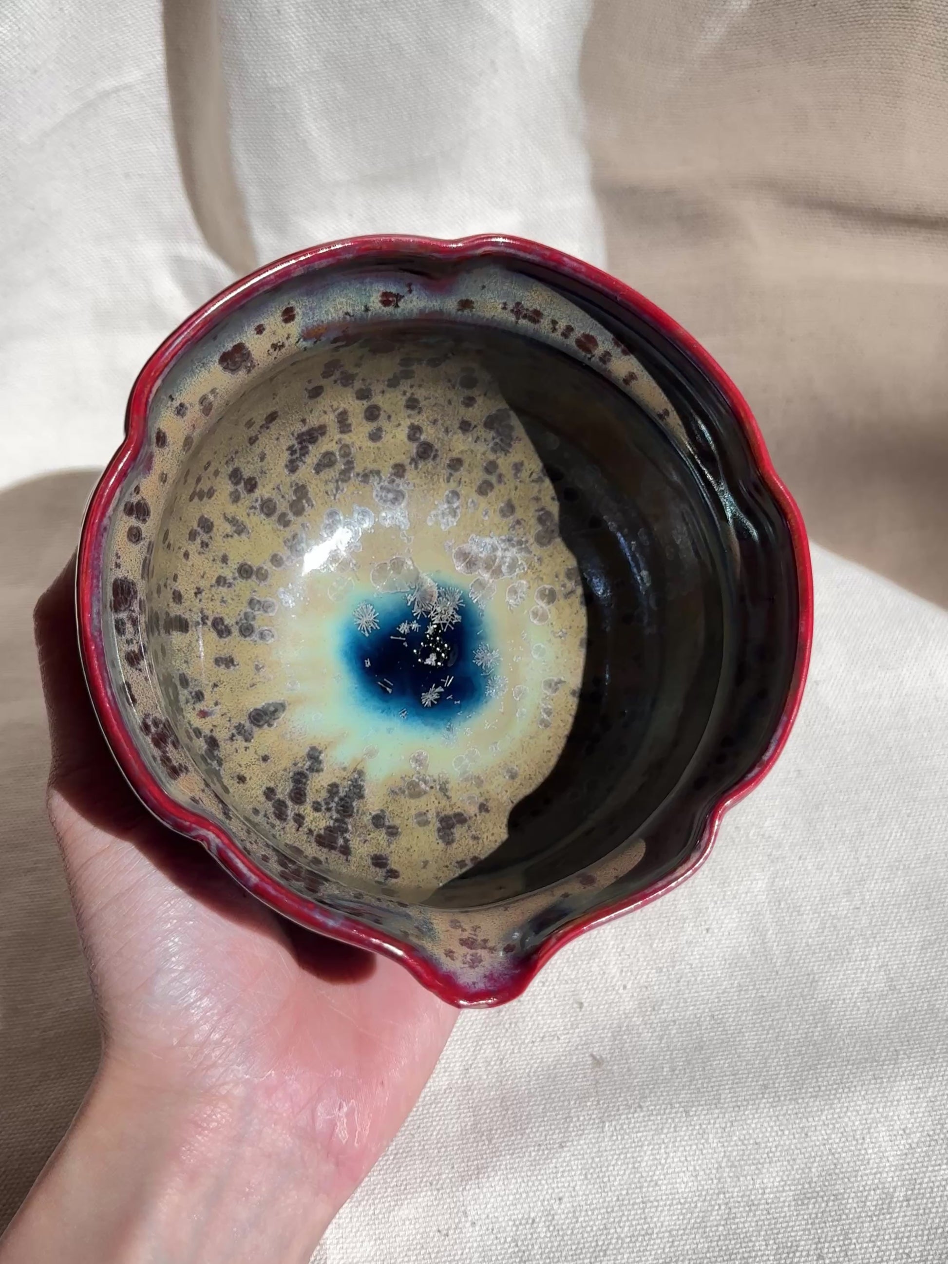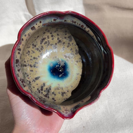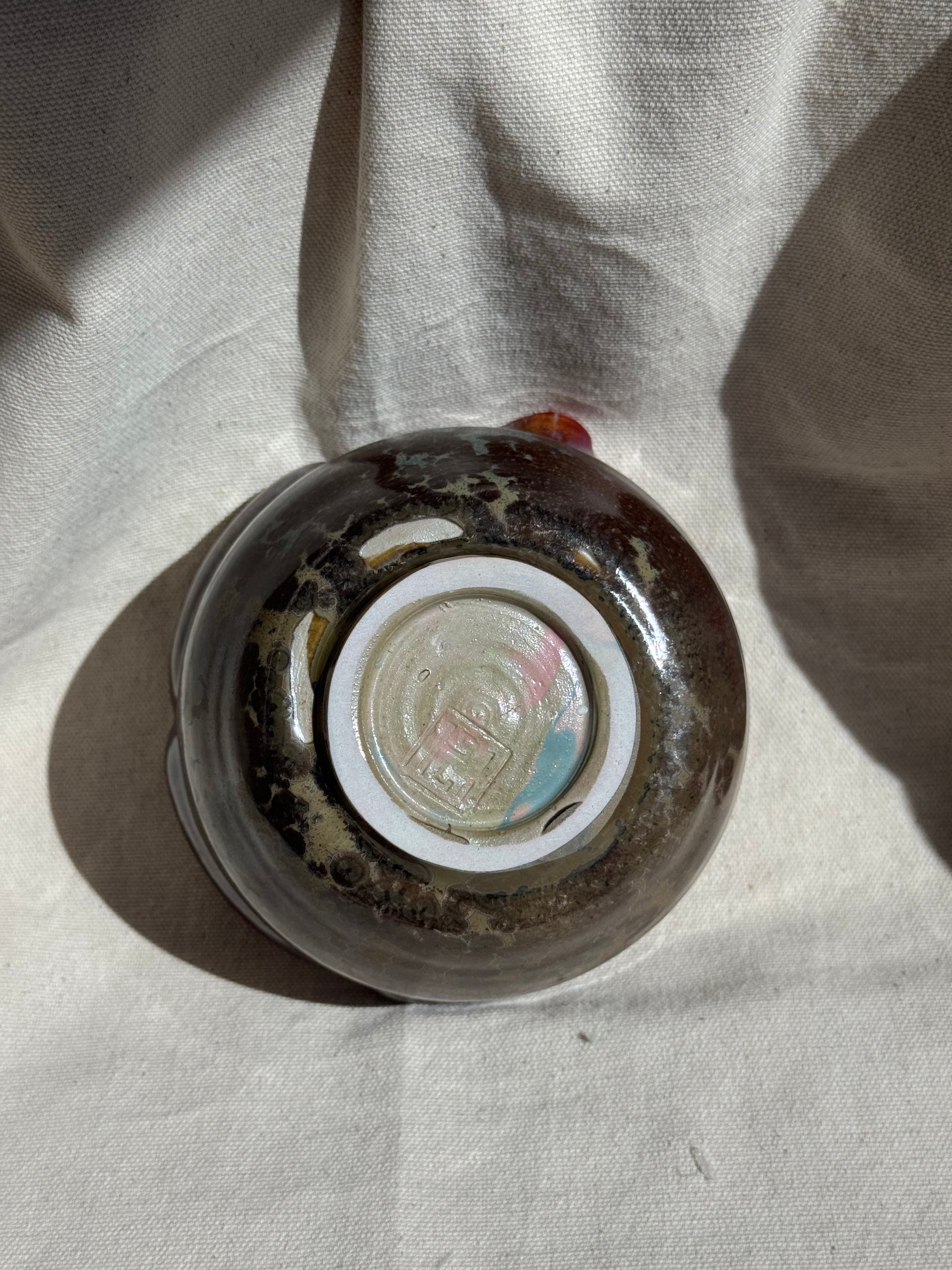 MATCHA BOWL MIXED CLAY BROWN GLAZE FLORAL KATAKUCHI 🌸